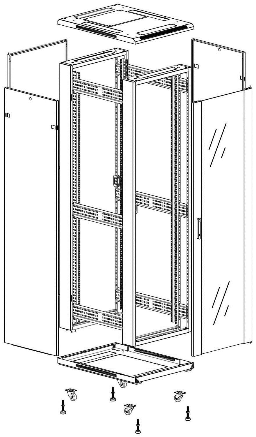 Tölvusk Excel 600x2070x600 M/Glerhurð, 19" Rammi Framan Og A