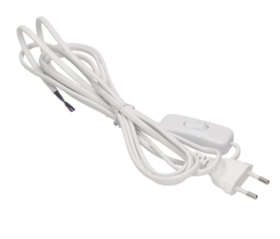 LAMPASNÚRA MEÐ ROFA OG KLÓ HVÍT, OR-AE-1394/W