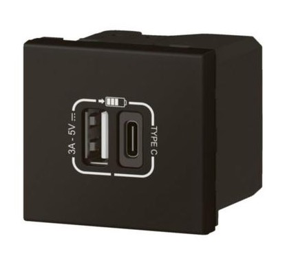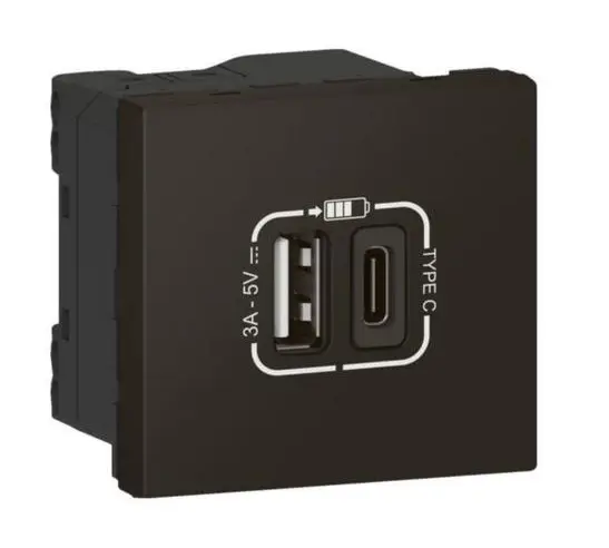 - Mosaic Svart 2xusb Hleðslustöð 79193l 2m Usb A+c 3a/15w 2m
