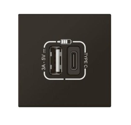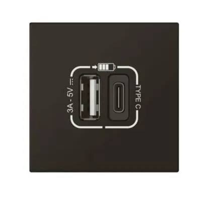 MOSAIC SVART 2xUSB HLEÐSLUSTÖÐ 79193L 2M USB A+C 3A/15W 2M