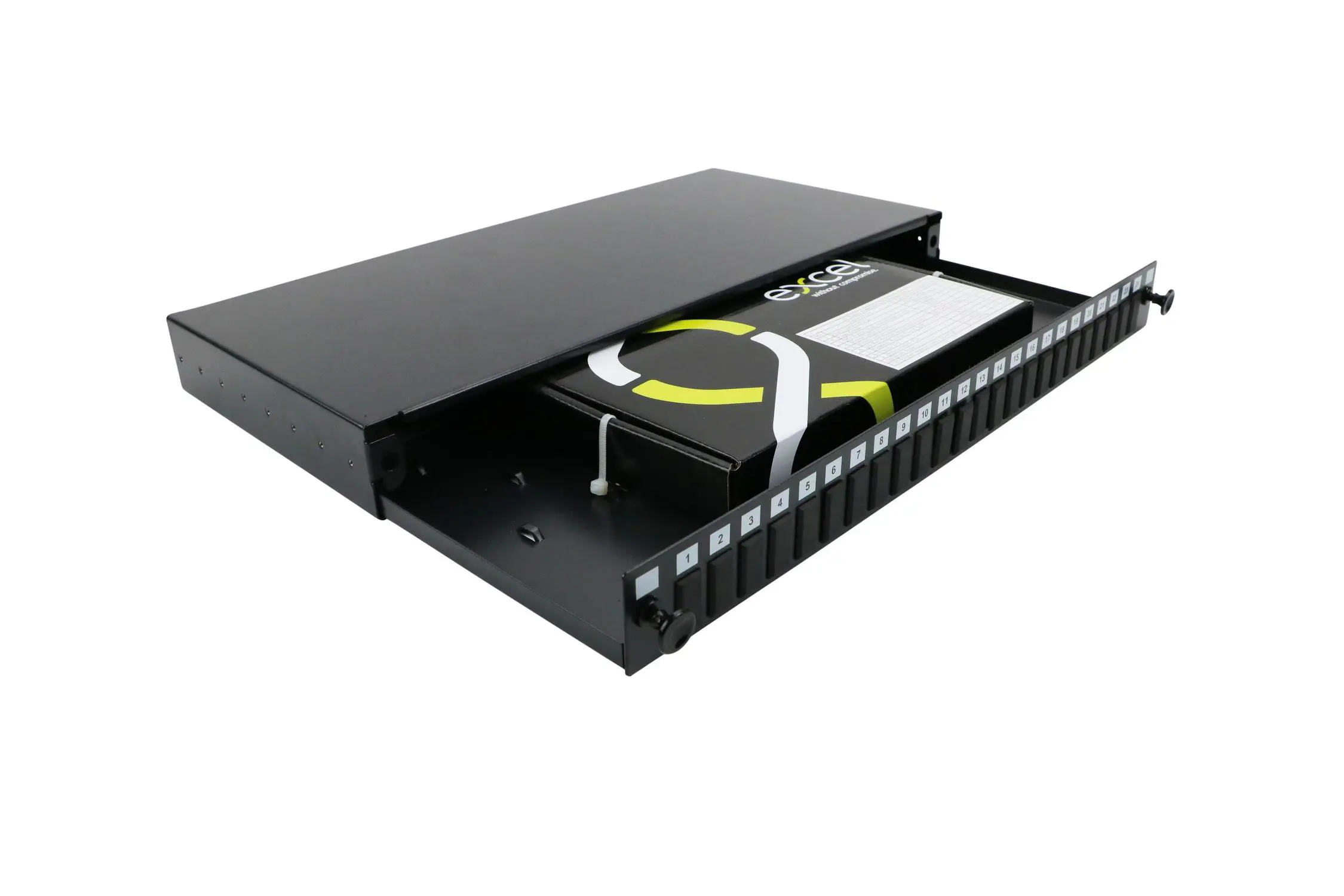 - Ljósl.Skúffa Í 19" Excel 24p Sc 1f/Lc 2f, Tekur (12-24pör) S