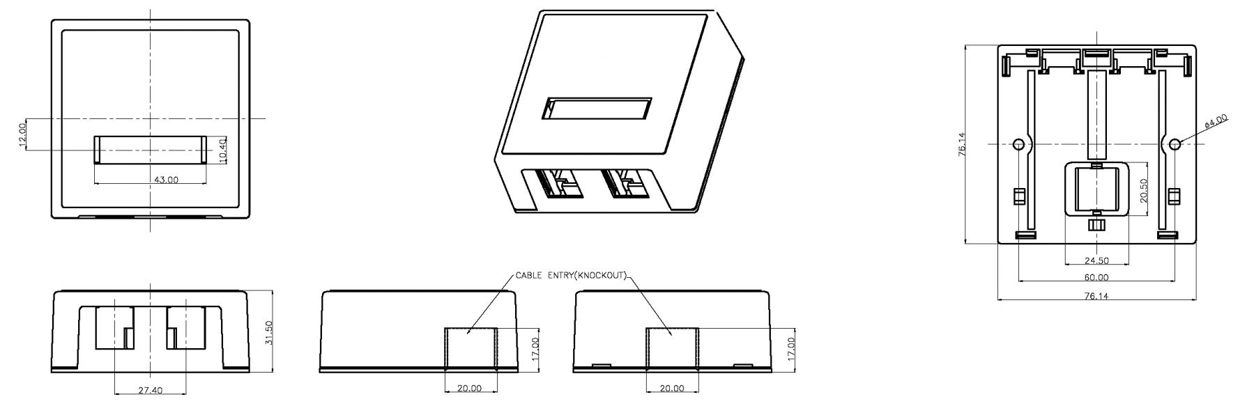 UTANÁLIGGJ. 2 PORT BOX TÓMT 100-021 KEYSTONE Excel