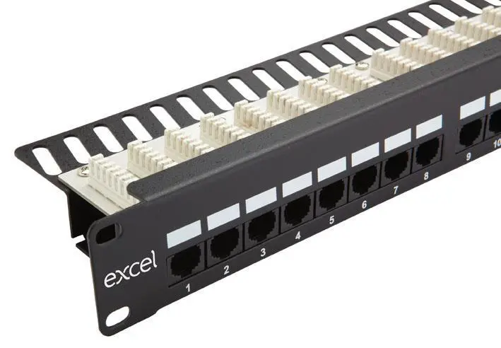 - Cat6 Excel 100-302 24p Tengibjarg Utp 1u, Svart Iso11801-2ed