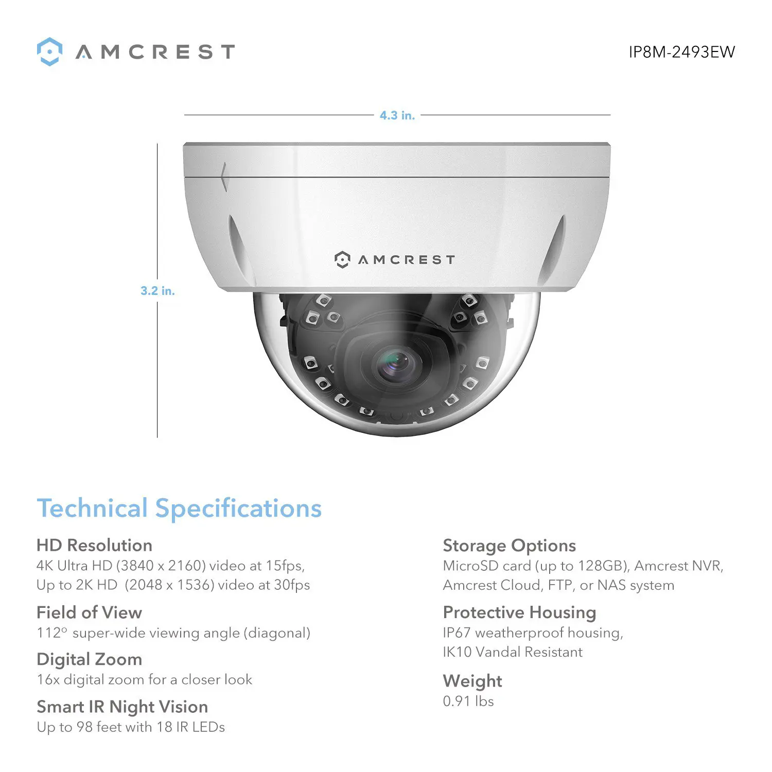 - Amcrest IP8M-2493EB UltraHD 4K (8MP) Dome POE IP Camera Secu