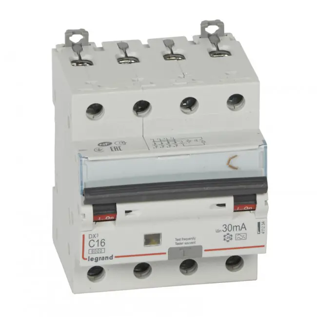 - Lekaliða/Sjálfvar 411234 4p 16a C 30ma ,Ac/Dc Liði, 4-bil 4m