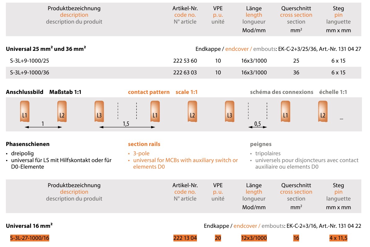 Safnskinna 3p G-3l-1000/10mm2, 3p Gaffalskinna 1m 10q